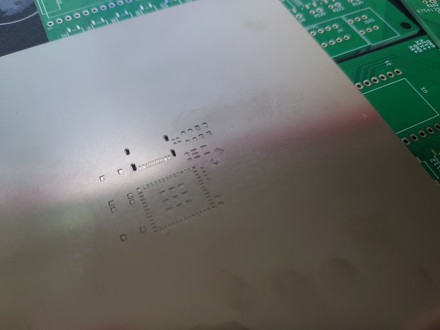 ステンシルを使って、はんだペーストを塗り拡げて実装しました。